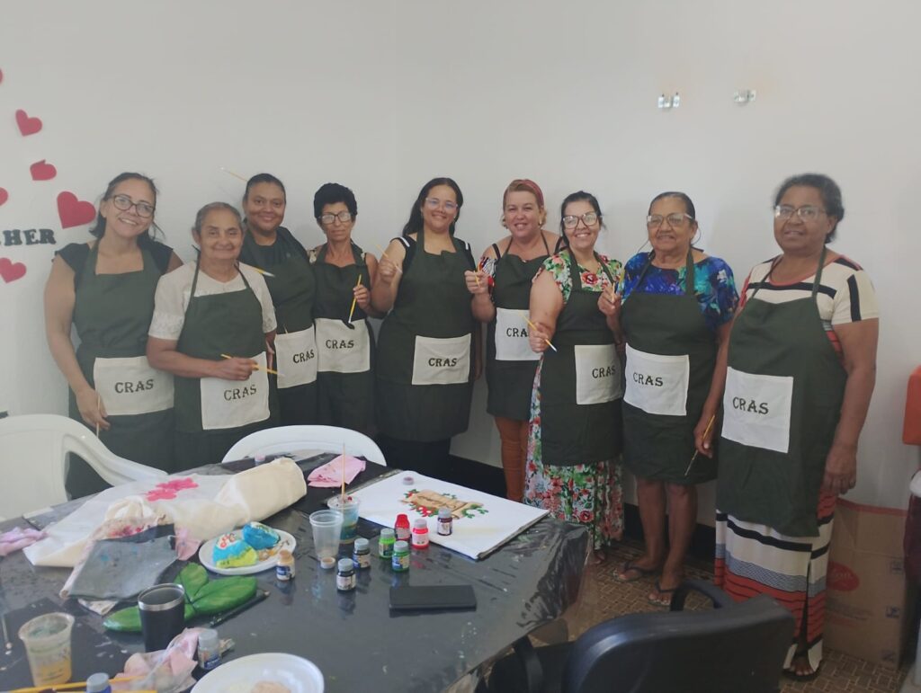 A Secretaria Municipal de Assistência Social realizou a entrega de aventais confeccionados pelas alunas do curso de corte e costura, que agora serão utilizados nas oficinas de pintura e artesanato, tanto para o público adulto quanto infantil.